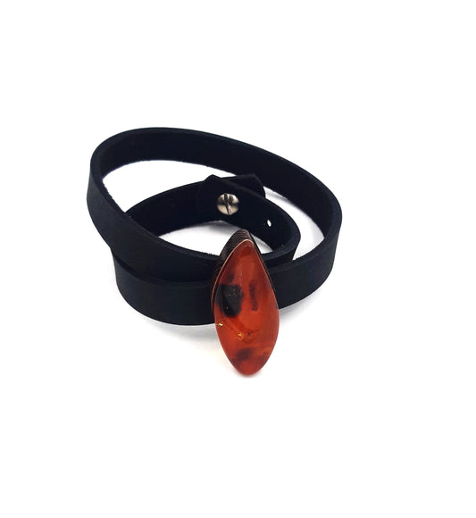 Baltic amber double bracelet with leather for adult