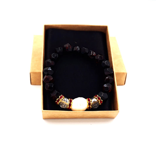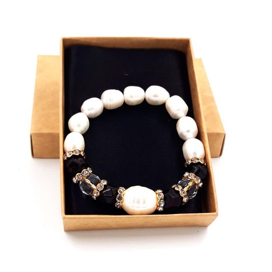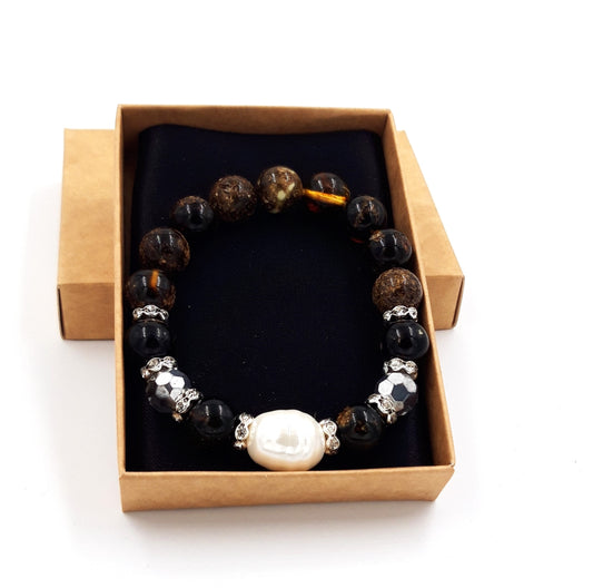Baltic amber bracelet for adults with freshwater pearl and crystal