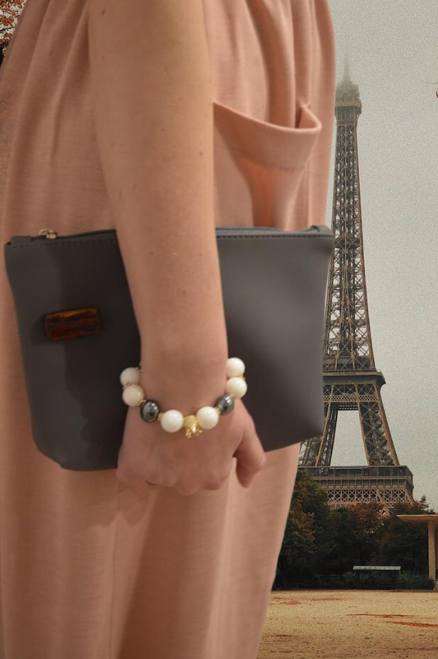Evening bag with amber details. A great gift for various occasions.