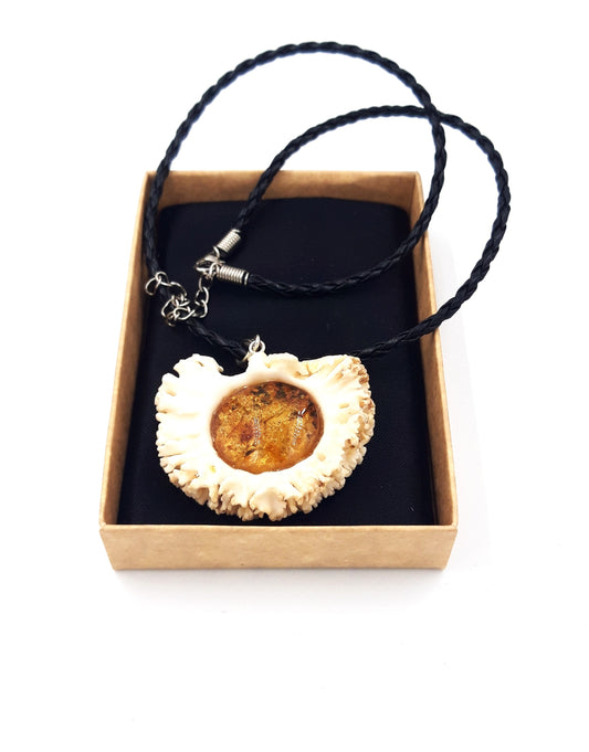 Doe's horn pendant with Baltic amber